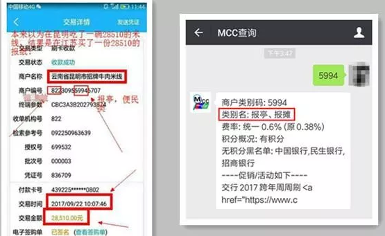 2、要能智能匹配商戶,這樣才可以確??ㄓ训拿看嗡⒌纳虘舨粫?huì)重復(fù),而且能夠自由控制商戶和刷卡金額相符,不然就會(huì)出現(xiàn)像上面這樣尷尬場(chǎng)面,在一家米線店消費(fèi)了30000元,請(qǐng)問你吃的是什么米線??!但其實(shí)這是買一份報(bào)紙花了30000元,這是要買下整個(gè)報(bào)亭的節(jié)奏。銀行也不是傻子,這樣是提不了額的,甚至有降額封卡的風(fēng)險(xiǎn)!