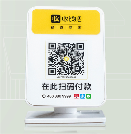 2、產品輕便,可移動收款:收款碼臺卡可放置于柜臺,也可拿到顧客面前完成收款;收款碼貼紙可張貼于店鋪各處收款