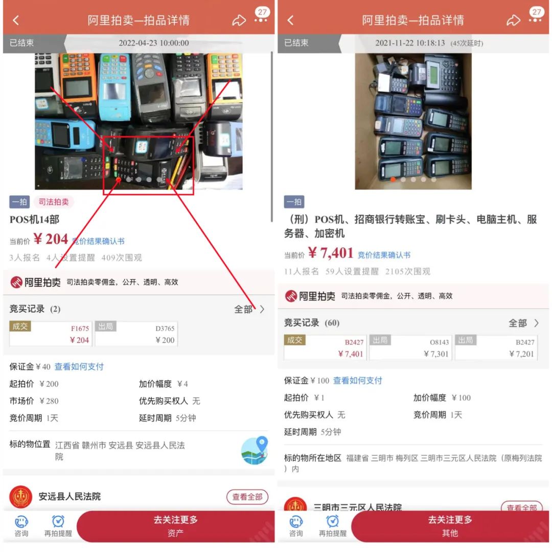 最后,至于這些POS機的來源,有些可能涉及XQ案件,拒付案件,有些可能涉及非法經(jīng)營案件等,但最后這個聯(lián)迪的屬于破產(chǎn)案件。大家關(guān)注這些的同時,也要記得遵紀守法,不然哪天或許你手里的機器也被拿來拍賣。