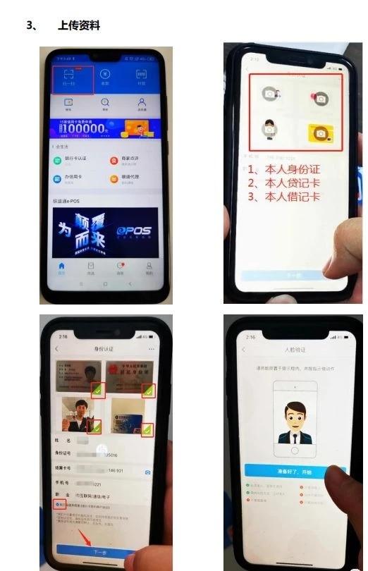 2.3機器綁定:打開APP,首頁的掃一掃→掃描機器背面條形SN→按提示步驟做身份檢測(人臉識別)→同意代收服務(wù)費點擊確定→成功綁定設(shè)備之后就可以首刷激活