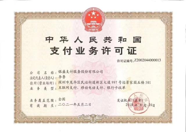 文章導(dǎo)讀:銀盛支付服務(wù)股份有限公司(以下簡稱“銀盛支付”)是銀盛金融集團旗下全資子公司,總部位于深圳龍華,成立于2009年7月,總注冊資本為1.4億元,是經(jīng)中國人民銀行批準、從事支付業(yè)務(wù)的國家高新技術(shù)企業(yè),是廣東省商務(wù)廳認定的廣東省電子商務(wù)示范企業(yè)和中國支付清算協(xié)會理事單位。2011年5月銀盛支付獲得中國人民銀行頒發(fā)的全國業(yè)務(wù)范圍的《支付業(yè)務(wù)許可證》,是首批獲得支付牌照的27家機構(gòu)之一,