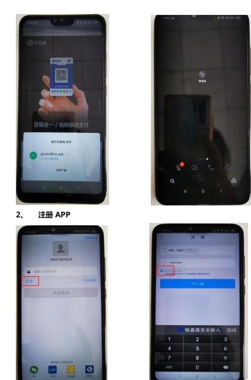 2.1:下載APP并注冊:新用戶入網(wǎng)蘋果或者安卓手機在商城/應(yīng)用商店直接搜索“銀盛通”,下載APP后點擊注冊,輸入手機號,密碼(6-22數(shù)字+字母),獲取驗證碼